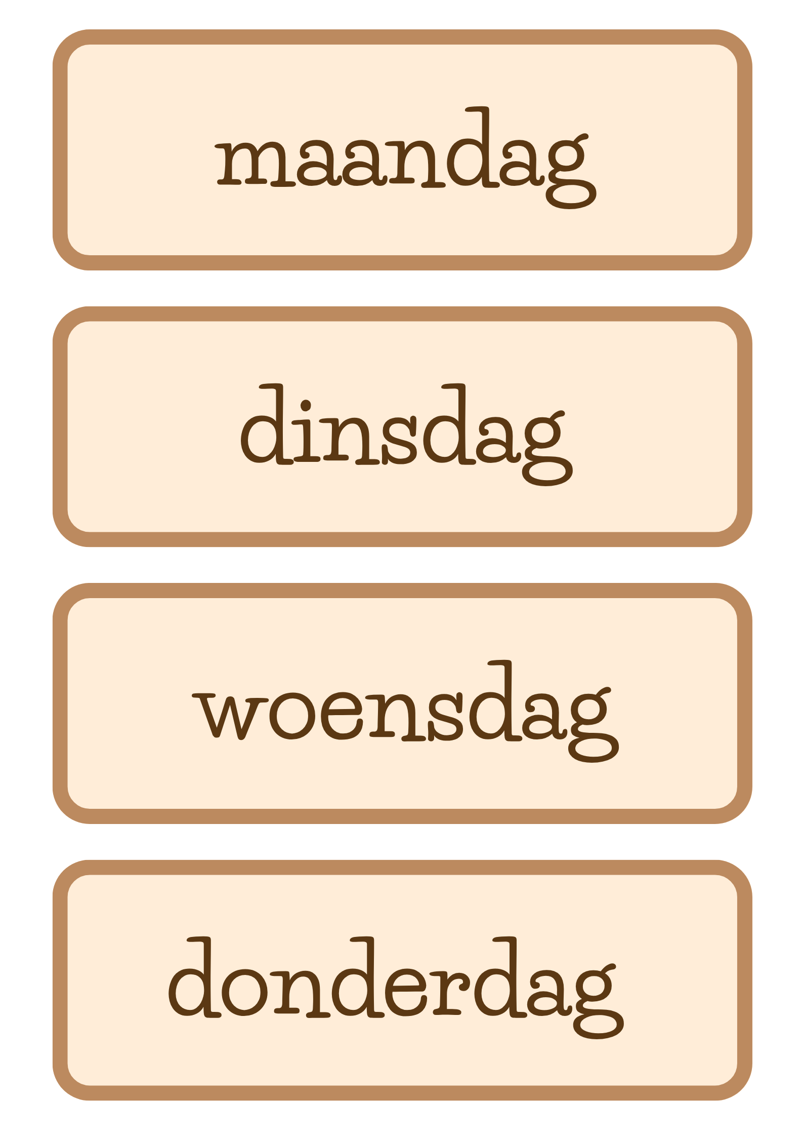 Bij het document zitten 92 dagritmekaarten, een aantal opties voor naamkaartjes, alle dagen van de week, maanden van het jaar en tijdkaarten vanaf 8:30 uur tot 15:00.