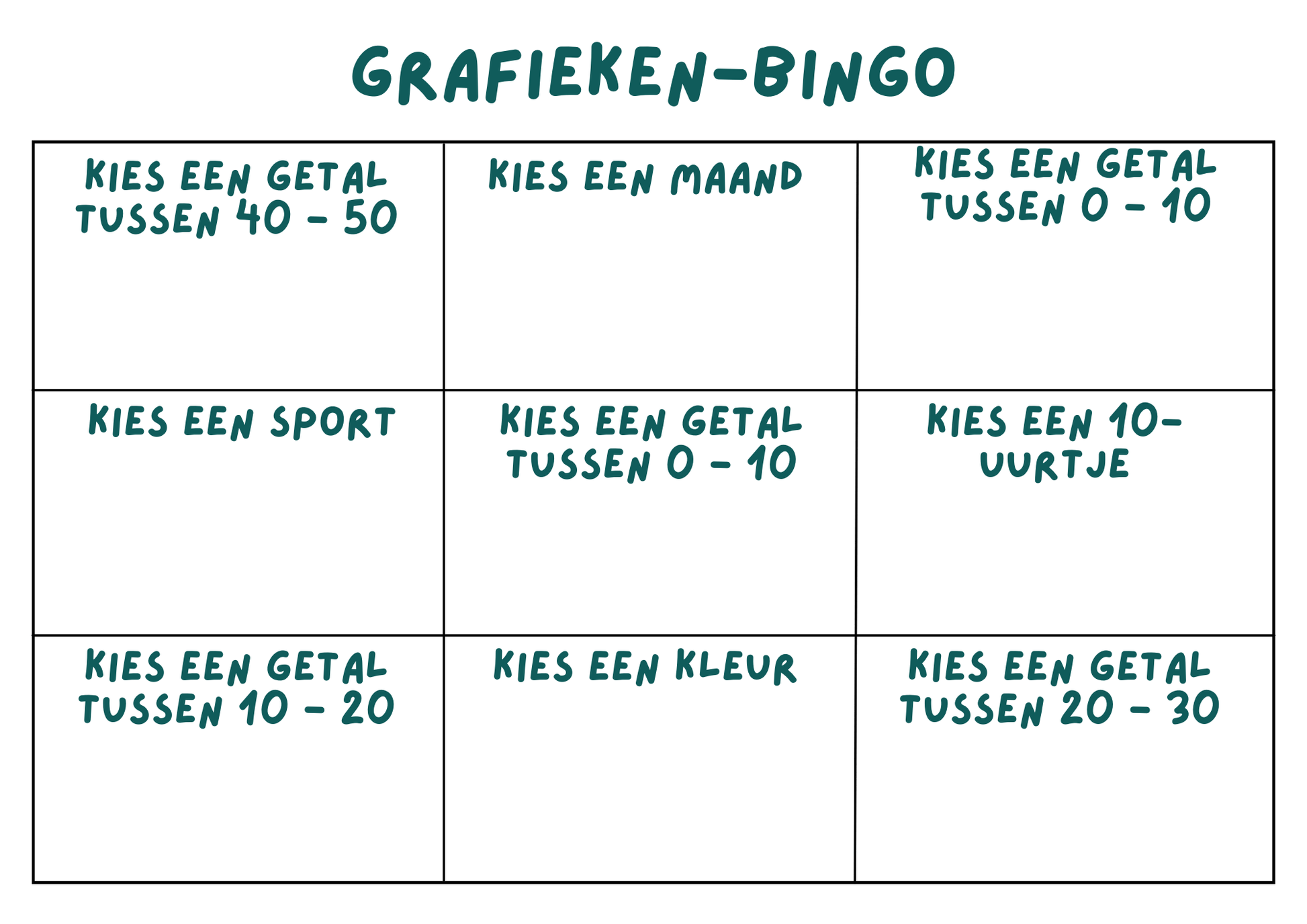 Met Grafieken-bingo wordt het begrijpen en aflezen van grafieken een stuk leuker! In dit educatieve spel hebben leerlingen een bingokaart vol antwoorden. Door de bijbehorende grafieken te bekijken en de juiste informatie te vinden, kunnen ze vakjes afstrepen en proberen als eerste bingo te halen.