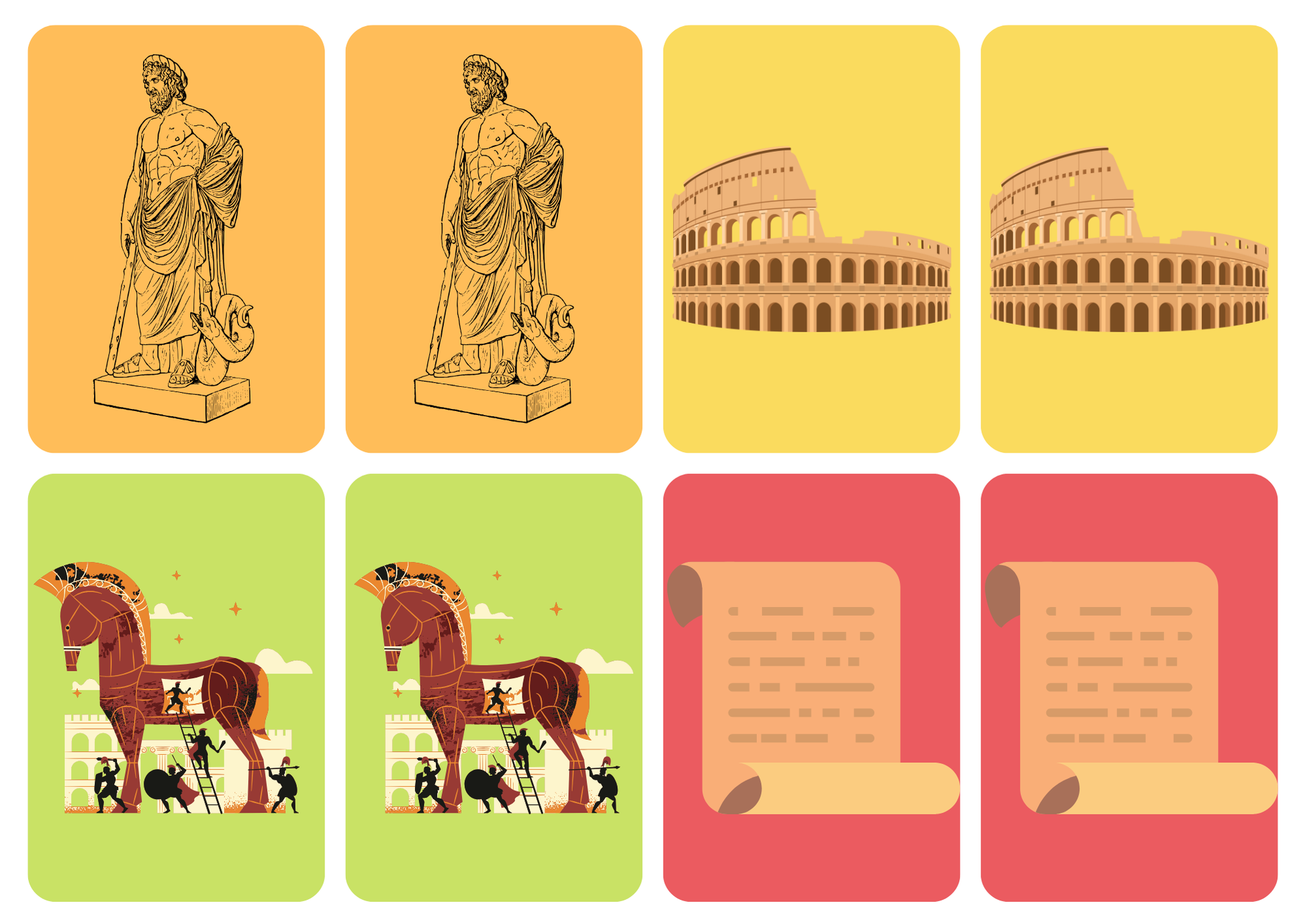 Matching cards thema 'Grieken en Romeinen'