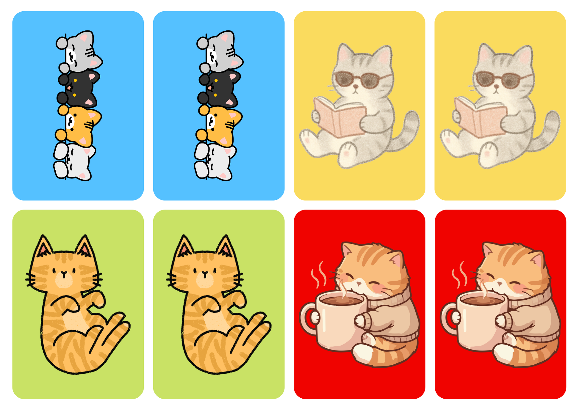 Werk je met een dieren- of kattenthema in de klas? Dan sluiten deze matching cards daar perfect bij aan. De vrolijke kattenillustraties maken het vormen van tweetallen extra leuk en zorgen voor een speelse sfeer in de klas.