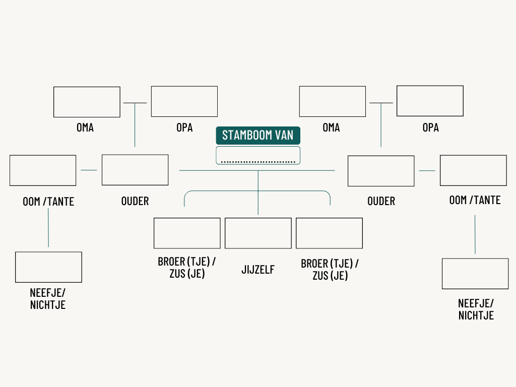 Ontdek samen met je leerlingen de verhalen achter hun familie met de Stamboom! Deze gratis download is een leuke en leerzame manier om familiebanden in kaart te brengen. Ideaal voor thema’s als ‘familie’, ‘mijn leven’ of ‘geschiedenis’. Leerlingen vullen hun eigen stamboom in met namen, en kunnen deze naar wens versieren of aanvullen met foto’s en tekeningen.